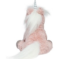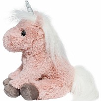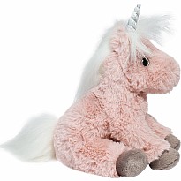 Melodie is a Mini Soft Pink Unicorn stuffed animal who knows the joys of summer rainbows and rosy colored sunsets. She features a seated pose that Douglas has gently weighted with beans for an appealing, floppy feel. Melodie's dusty rose colored coat will melt into your hands every time you need a little snuggle. A long, silky mane and tail add character to Douglas' lovable Unicorn foal. Melodie's spiraled, silver horn adds the appropriate amount of magic to Douglas' fantasy plush, while soft, gray hooves and pale golden eyes with a glittery shimmer complete her fanciful appearance. Take this baby Unicorn plush into your hands and share in the fantasy of life together!