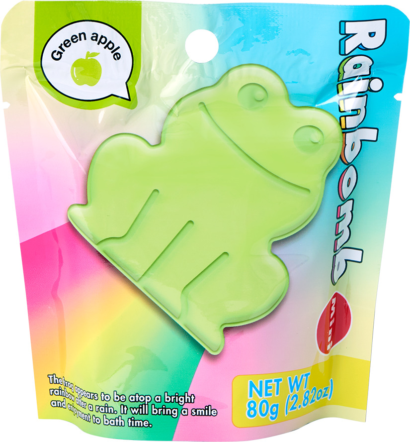 As the Rainbomb floats on the surface of your tub, it leaves a colorful rainbow behind!