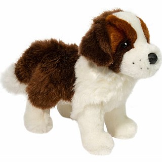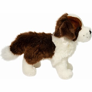 You might think Brutus the Saint Bernard stuffed animal is a tough guy, but he's actually a real softie! Descended from the gentle giants that patrolled the Alps in search of lost travelers, Brutus dreams of the day when he will be able to help the people he loves. This little Alpine mastiff features markings accurate to his breed and a soft, fluffy coat. Let Brutus charm you with his warm, amber colored eyes. His expression is friendly and lifelike and will inspire hours of creative play. Quality, plush materials and resilient polyester fill ensure this pup will be around for all the love and attention you can give. Adopt Brutus for your own and this sweet plush puppy will fight his way through a snowstorm to be at your side!