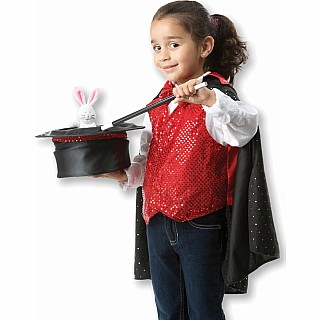 Abracadabra, hocus-pocus, presto! Young magicians will be delighted with this impressive role play set. Kids can make a coin magically appear and disappear from the secret vest pocket or pull a rabbit out of the top hat's hidden compartment. Set also includes a cape with bow tie, magic wand, and card with tricks. Prepare to be amazed!
