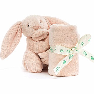 A perfect gift for newborns, the Bashful Bunny Soother is Jellycat's most loved Bashful Bunny in a soft fur, with long lopped ears, a pink suedette nose and stitched eye detail holding a square shaped soother, un-stuffed and irresistibly soft to touch. Made from recycled fibers and neatly rolled up and presented with a Baby Jellycat grosgrain ribbon.