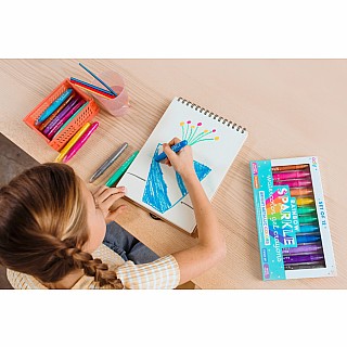 Create bold strokes of color and watch them magically change when you add water. The gel crayons that you love have gotten a teensy weensy makeover, and now they look as good as the masterpieces they create! These washable watercolor gel crayons sparkle with a rainbow of metallic hues. 12 water soluble, non-toxic crayons are included, each with a twist up mechanism. If you run low, just turn the barrel for more color! Add a wet paintbrush for watercolor effects for truly unique works of art. Let your artwork shimmer and your creativity shine!