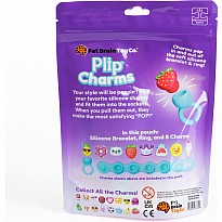 Pick your favorite charms and fit them into the sockets of the silicone bracelet and ring. It's a playful way to accessorize - on your wrists and fingers or even on a backpack - and when you pull them out, they make the most satisfying "POP!" Each set comes with a bracelet, a ring, and eight unique charms. Collect them all. Trade them with your friends. Let your personality POP with Plip Charms!