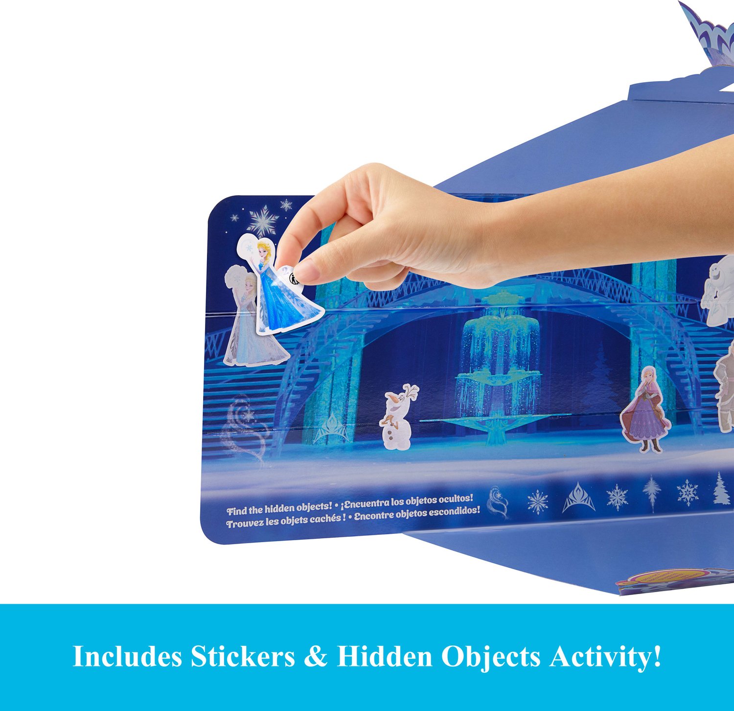 - Kids can decorate the play scene with stickers and complete the fun activity: finding hidden objects in Elsa's ice palace!