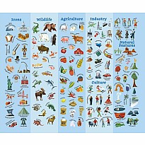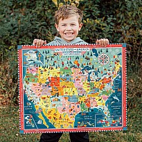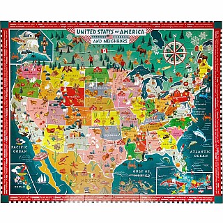 A carefully researched and beautifully designed pictorial map of the U.S.A and its neighbors, brimming with icons by Uta Krugmann offering information about natural and cultural landmarks, industry, agriculture, and wildlife. Includes a color poster identifying these icons. An accessible, educational puzzle offering lessons in geography and beyond.