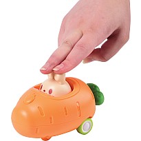 Some bunny's zooming in to say hi! Discover small but mighty sensory stimulation for little learners - push down on the bunny and the carrot car zooms away. The smooth textures and calming colors of this push toy are irresistible.