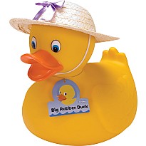 Rubber ducky, you're the one! Make bathtime lots of fun with a classic yellow rubber duck... in a super 10" size! Don't worry, parents: ducky's bottom is sealed to prevent bacteria growth. Look at those big blue eyes and happy smiling beak... they quack us up! Available wearing a straw hat or a sailor hat; each sold separately.