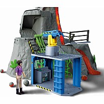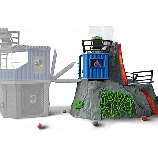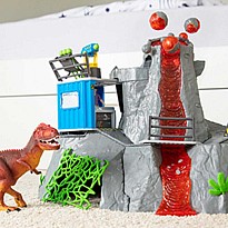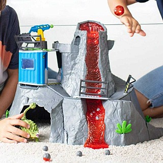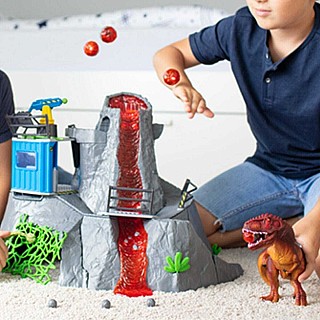 The Volcano Expedition Base Camp playset is part of the schleich® DINOSAURS theme world. It features an exciting eruption that catapults stones from the volcano's crater. Built-in LED lighting illuminates the lava flow for realistic magma effects. Feel the earth tremble as the volcano vibrates and emits smoke (don't worry, parents – it's a cool pretend smoke). Three (3) AA batteries and four (4) LR44/A76 batteries are required (not included).