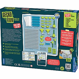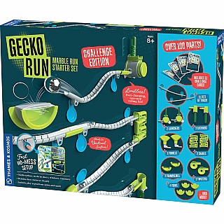 Move over boring marble runs, there's a new kit in town! Witness physics in action with an innovative, flexible system of tracks that includes everything you need to challenge yourself or others to a marble-run-building competition. With 32 challenge cards, two rapid-fire launchers, and enough parts for two kids (or two teams) to build their vertical marble runs at the same time, this set turns Gecko Run into a fun, thrilling engineering game. Thanks to nano pads (safe little strong suction cups), any vertical surface has the ability to become a marble run surface.