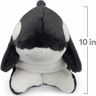 • ORCA WHALE PLUSH: Flynn is an adorable crescent-shaped orca with luxuriously soft black-and-white plush. Flynn sits at 10' tall and features a unique curved design that lets him look in your eyes with every hug, making each squeeze special!