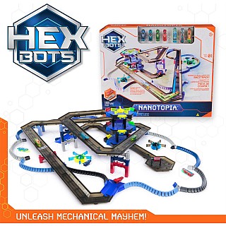 Assemble the ultimate nano flash habitat with HEX BOTS Nanotopia! With tons of snap-together track pieces and obstacles, there has never been a more vibrant playset to let your nano loose in! Race your Nano Bots against each other and decide the ultimate champion! As they move at twice the speed, the three newly designed flash nanos included light up when set into motion. These mini robot toys will randomly switch direction, bounce off objects, and explore little nooks and crannies- just like real bugs. Three merry-go-round obstacles and four additional nanos are included! The HEX BOTS nano bots are the perfect sensory toy for kids and pets, with light-up fun designs and insect-like crawling motion to keep them engaged. Build your collection of nanos and create your own playground with the HEX BOTS learning & education toys! Add tracks and obstacles to create a whole new world of HEX BOTS Nano Bots! These educational toys are a fantastic addition to your collection of cool stuff, and great STEM Toys for girls & boys to encourage creativity and passion for building!