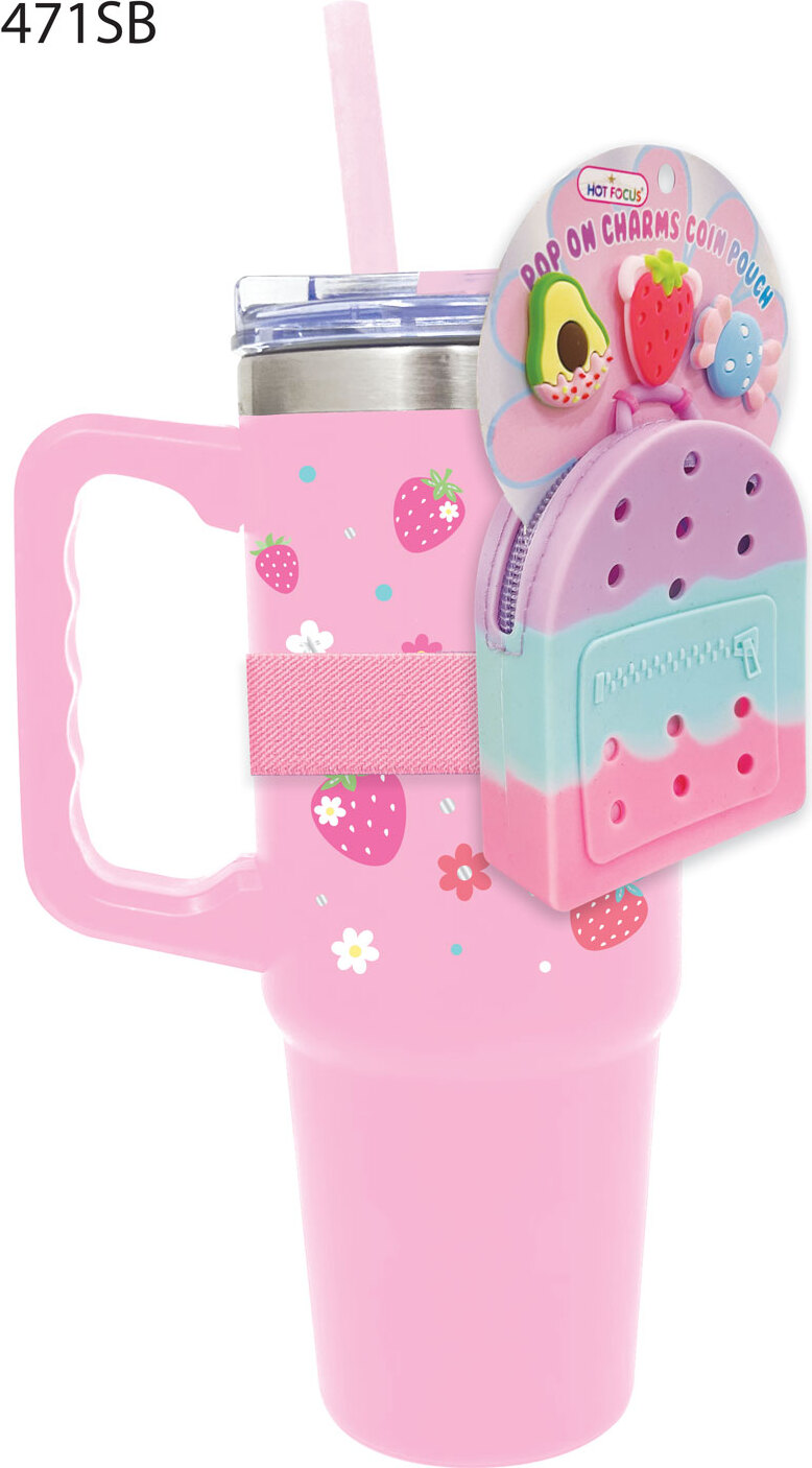 Stainless Steel Tumbler w/ Keychain Charm Bag, Strawberry (27 FL. oz/800mL)