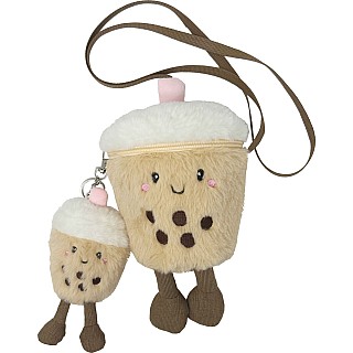 Fuzzy Crossbody bag with Matching Keychain, Boba