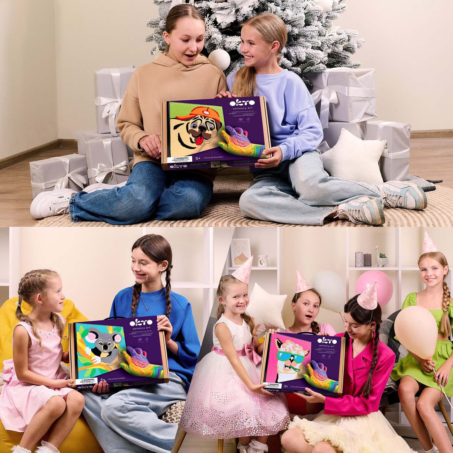 Kids complete a bright pug dog picture by filling numbered zones with soft air‑dry clay. Low‑mess crafting with a satisfying framed result—no oven, dries in about 24 hours.