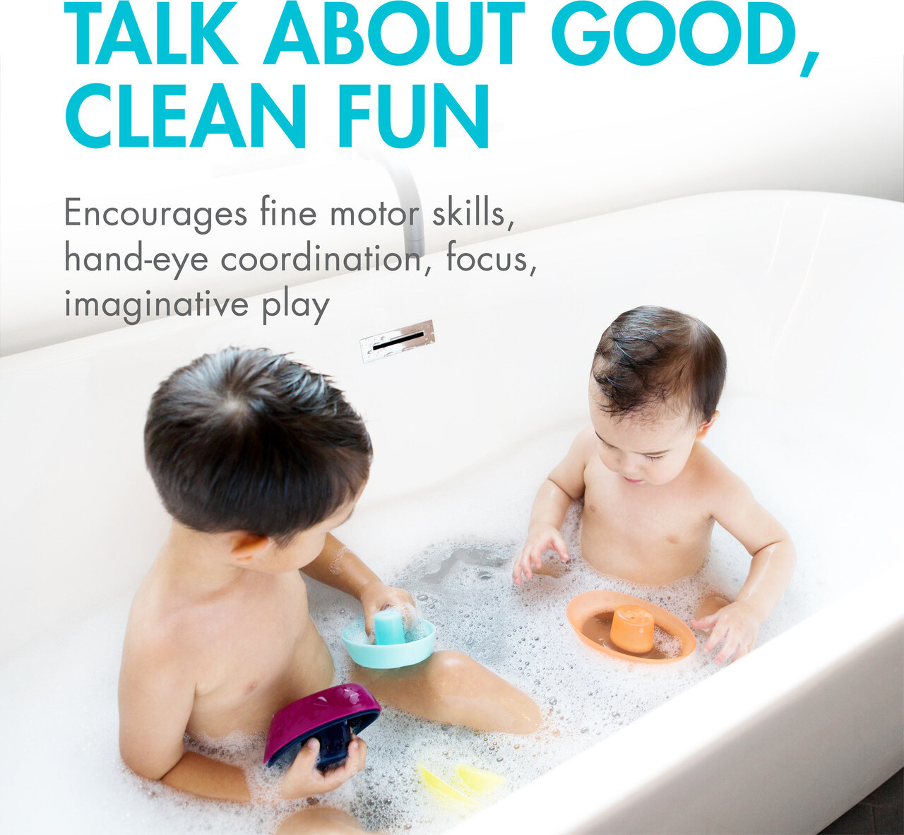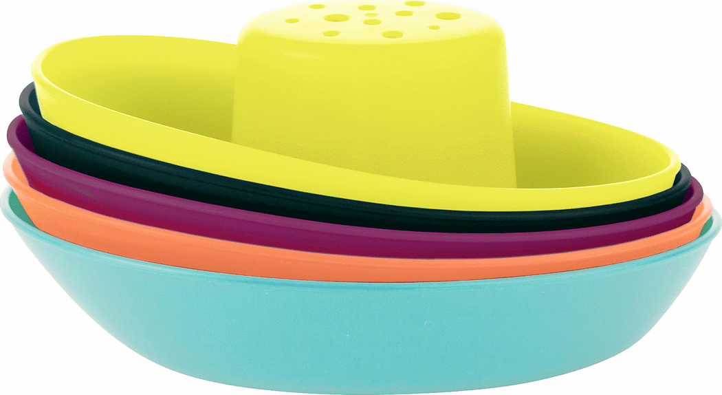 NO LANDLUBBERS ALLOWED. Plastic-ware in the tub is all well and good until it comes time to pack up that leftover meatloaf. Instead, we recommend FLEET, a set of five stackable boats that satisfy every child's insatiable desire to pour water on everything. They're designed with wide decks for scooping and drain holes for a rain effect (it gets stormy on the high seas). So go full steam ahead...just watch out for soap icebergs.