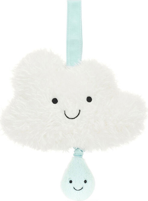 Introducing Amuseables Cloud Musical Pull, a gentle lullaby to brighten any nursery! Gently pull on the smiling blue raindrop and an original Jellycat lullaby will play from the cheerfully soft cloud. Fasten onto a crib or pram with the Velcro attachment and whatever the weather, there will be soothing sleeps for Baby.