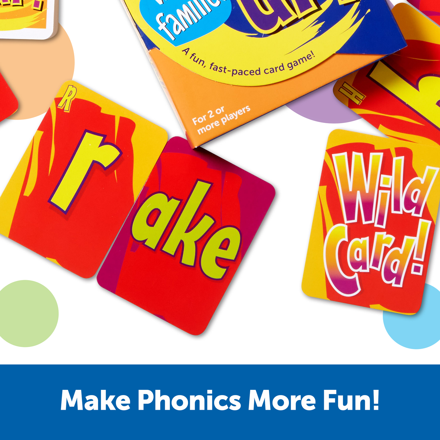 This exciting, fast-paced card game provides kids with hard-hitting practice in reading skills! Players pick and pass cards as fast as they can to spell words. It's fast! It's crazy! And it's so much fun, kids will want to snap it up again and again! Each game includes 90 cards.