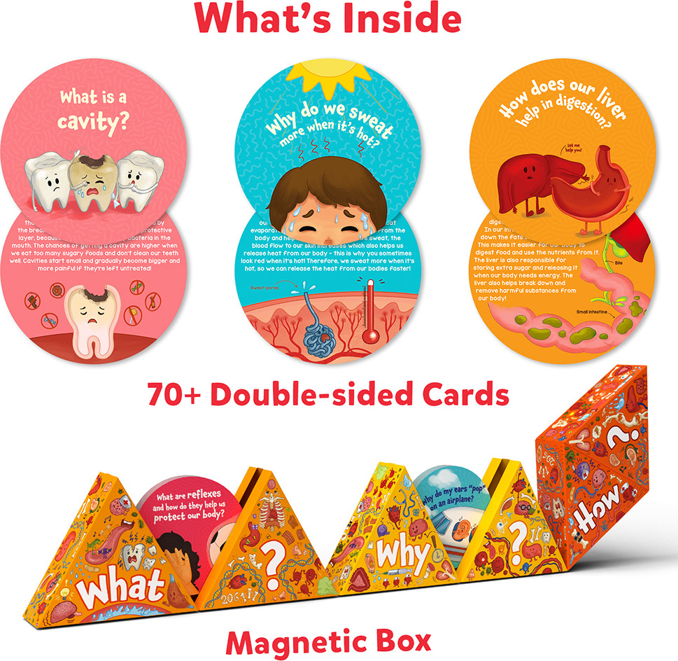 Contains- 70+ Double-sided cards with hundreds of fun facts all about the human body