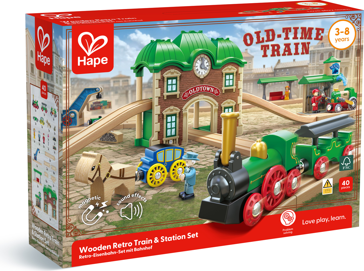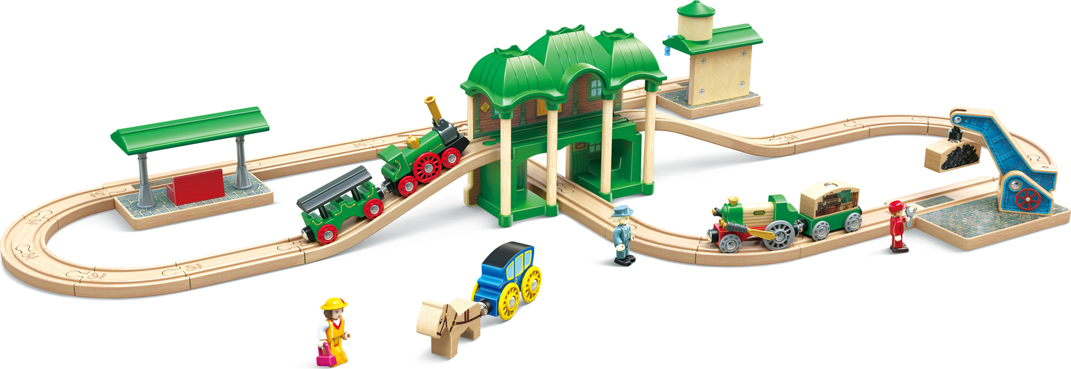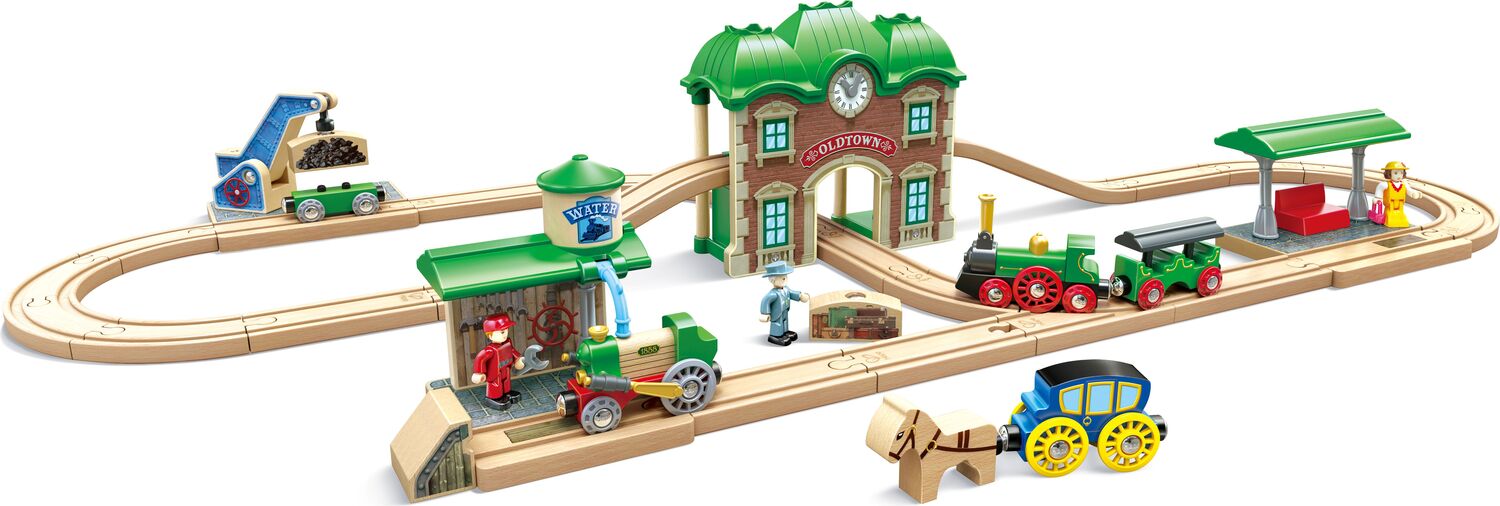 - RETRO DESIGN: Includes steam trains, a central station, carriages and figurines - all styled with nostalgic, vintage detail.