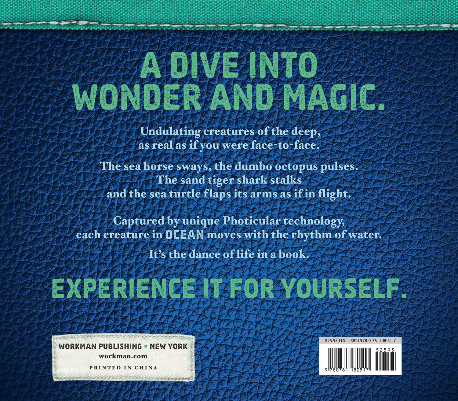 Using Photicular technology—an innovative lenticular-based technology that uses precision sliding lenses and four-color video imagery—each image is like a 3D movie on the page, delivering a rich, fluid, immersive visual experience. Open the book, and the reader is swept into the magic of an underwater world, face-to-face with a floating Yellow-Banded Sweetlips; with a glow-in-the-dark Deep-Sea Anglerfish; with a Sea Horse swaying in balletic motion; with a Sand Tiger Shark gliding along the ocean floor, its gaze haunting, its hook-toothed mouth gulping open and closed.